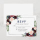 Watercolor Floral Burgundy Marsala Blue Silver Wedding RSVP Card