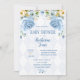 Floral Blue Diamond Baby Boy Shower Invitation