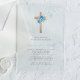 Floral Blue Gold Cross Baptism Acrylic Invitations