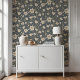 Floral Blue Gray Beige Lily Botanical Pattern Wallpaper
