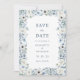 Floral Blue Save the Date. Step into a garden of botanical beauty and discover a stunning save-the-date invitation design featuring beautiful hand-painted watercolor florals arranged in a lovely vintage frame. The delicate dusty blue, cream, and white roses and sage green eucalyptus greenery create a rustic elegance, perfect for your special event! The blue-gray font and subtle touches of blue perfectly complement the timeless design. Let this exquisite invitation express your rustic romantic elegance and timeless style.