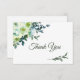 Elegant Christian inspirational wedding thank you card features a floral watercolor design with beautiful blue, white and ivory flowers accented with leaves and splashes of gold and turquoise greenery. The back thank you can be customized or deleted for a hand written note. Perfect for spring, summer, autumn fall, winter weddings.*