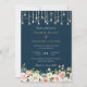 Floral Blush Navy String Lights Elegant Wedding Invitation