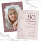 Floral Blush Pink Mauve Photo 80th Birthday Party Invitation