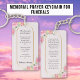 The Floral Blush Pink Memorial Prayer Keychain is a touching and beautiful way to remember and honor loved ones who have passed. This prayer keychain features a gentle blush pink background, adorned with delicate floral patterns in soft shades of pink and white. The subtle, soothing colors convey a sense of peace and serenity, making it an appropriate choice for memorial services or as a keepsake for friends and family.