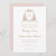 Floral Blush Roses Greenery Crest Monogram Wedding Invitation