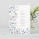 Plain white envelopes are included with paper invitations and will come to fit the invitation size you select. If you don’t need the envelopes, you may choose to not receive them by selecting the dropdown below "Envelopes" and choosing "None." If you’d like to have a design on your envelopes, you can browse all of these available envelopes to find the design that complements your Floral Boho Blue Wedding Invitation.