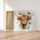 Floral Boho Highland Cow with Pastel Background Faux Canvas Print