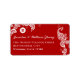 Elegant bohemian red / white peacock design with floral details and a tail made of paisley shapes asian / chinese wedding return address label.