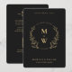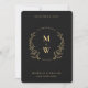 Floral Boho Wedding Monogram Elegant Black Gold Invitation