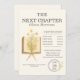 Celebrate their academic milestone with this floral books “Next Chapter Begins” graduation party invitation. Featuring a charming stack of books accented with soft florals, this literary-inspired design is perfect for book lovers, scholars, and graduates starting their next chapter. Clean typography and a balanced layout keep event details clear and stylish. Fully customizable for any graduate or party theme.