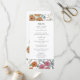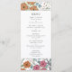 Colorful menu with a floral border of daisies, foliage and wild flowers in pinks, oranges and purple. Perfect for a Spring or Summer wedding or can be customised for any event.