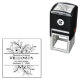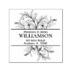 Simple return address self-inking stamp with a prominent floral border bounding a bold name and associated address. Clear bold, easy to read. Suitable for all return addressing needs, both personal and business. Fully personalizable. Contact to assist with customizations to fit your need.
