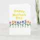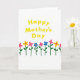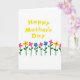 This greeting card features a cheerful message in sunny yellow lettering placed near the upper center, standing out against a wide white background. A row of simple, stylized flowers lines the lower portion, like a sweet little garden offered as a friendly gesture ❤️. The blooms alternate in bright pink, warm yellow, and soft blue, each with a contrasting dot at the center that feels like a small wink between friends. Slender green stems rise evenly with rounded leaves, giving the scene a steady rhythm that feels calm and caring. The open space between the top text and the flowers keeps the design airy, letting the message and the floral row feel connected without crowding. The text sits above the flowers with plenty of breathing room, and its yellow color echoes the yellow petals below for a gentle sense of togetherness 🌼. Along the bottom third, the flowers are spaced in a neat line, with matching heights and alternating colors across the white field.