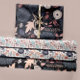 Botanical floral trio prints in black, blue, pink from Studio Posies. These patterns feature tossed flowers and leaves, buds and blooms.