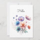 A watercolor illustration of pretty flowers in teal, peach, pink, purple, blue. This botanical print is perfect for a simple Hello greeting, but you can change the text to your preferred greeting. AI assisted graphic purchased with commercial use. Artwork: DreamCafeArt