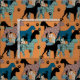 Original design custom printed fabric features boxer dog silhouettes filled with whimsical floral patterns and pawprints