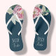Enjoy your bachelorette weekend in style with these fun floral flipflops, featuring a watercolor blooming cabbage rose, in tones of pinks with green leaves, on a navy blue background. Also features " bride tribe " in white script. Cute to give to bridesmaids and your bridal squad to wear on your bachelorette party, spa day or the morning of your wedding.