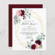 Give your bridal shower invitation a special touch with our unique and stylish geometric floral eucalyptus invitation. The bold burgundy and green colors will bring a modern and chic look to your special party invites. A perfect combination of greenery and beautiful floral detail will make your bridal shower cards one to remember.