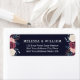 Modern Burgundy Floral Midnight Navy Blue Bride and Groom Wedding Return Address Label. Features floral arrangement in shades of blush pink, burgundy, blue-gray, and copper rose gold on dark midnight navy blue. Personalize with your name and address. Excellent for engagement and wedding mailing.