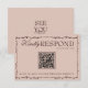 A classy and elegant calligraphy beige and white burgundy old money QR code wedding rsvp card. That has a vintage and modern beige background with deep red script and hand written whimsical stylish wording and hand drawn branches. And customizable and scannable QR code in the center. Luxurious and chic with classic handwritten lettering. It is all editable by clicking on the personalize button.