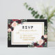 Floral Burgundy Blue Black Gold Wedding RSVP Card
