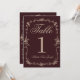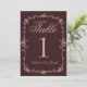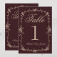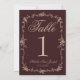 Classy and elegant botanical floral beige and dark red burgundy wedding table numbers. As you see it features a burgundy old money background with beige script that match the whole suite. And same beige outline floral frame.