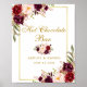 Watercolor Floral Burgundy Marsala Gold Wedding Hot Chocolate Bar Poster