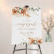 Welcome your guests in style with this Floral calligraphy Pampas Engagement Party Sign. Featuring a chic blend of rustic charm and modern elegance, this sign is adorned with delicate terracotta flowers and pampas grass. The burnt orange tones combined with simple calligraphy create a warm and inviting atmosphere, perfect for any engagement celebration. This versatile sign doubles as wall art and décor, seamlessly fitting into any boho-themed event. Whether you’re hosting an outdoor party or an intimate gathering, this sign adds a bold and bright touch to your special day.