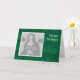 An attractive white bordered square frame, ready for your picture, on a green floral patterned background. Happy Birthday written on the front and inside. (The greetings in this card can be customized).