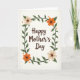 Designed with a soft, off-white background, this card features a warm brown greeting centered in the middle, with the words arranged in a flowing, calligraphy-like style. A circular wreath of dark green vines and leafy sprigs wraps around the text, giving the layout a gentle, close-knit feel like a hug ❤️. Four large flowers sit at the top, bottom, left, and right edges of the wreath, as if they’re leaning in toward the message like friends gathered around a note. Two blooms are a creamy beige with deep brown centers, and the other two are a cozy orange-rust with matching dark centers, creating a calm alternating pattern. Small orange starburst marks are sprinkled between leaves and petals, adding little sparks of celebration 🌼. The main lettering stays in the center while the wreath forms a neat border, keeping the focus on the greeting without crowding it. The vines curl in a smooth ring, and the orange starbursts dot the open spaces around the wreath.