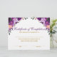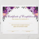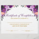 Professional, Customizable, Certificate of Completion. Great for classes, training courses, schools, business courses and more. Personalize with your custom text. Elegant Watercolor Purple Ultra Violet Floral with purple flowers, peonies and botanical greenery. Gold Script.