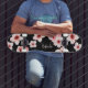 Pink black WATERCOLOR on a black marble background. Japanese cherry blossom design for teen girls.