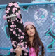 Pink Japanese cherry blossom branches on a black background. For girls who love flowers and floral Asian designs.