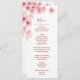 Pink fading watercolor cherry blossoms on a white background. With custom bride and groom names, the wedding date and a custom menu text. On the backside are the names and date to change.