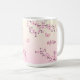 pink-colored designs depicting the serene-looking cherry blossoms on the coffee mug