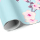 Floral Cherry Blossoms Pink Sky Blue Wrapping Paper