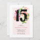 Floral Chic Number 15 Pink and Gold Quinceanera Invitation