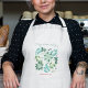 Christmasapron in style with our modern festive Christmas floral holiday t-shirt. It feature beautiful hand painted flowers in a traditional classic and green color scheme. Personalize the apron by adding your custom name personalised details in red. The background features a white. Original artwork by Caroline Bonne Müller