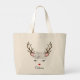 Floral Christmas Reindeer Personalized Name Large Tote Bag