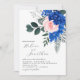 Floral Cobalt Blue Pink Garden Elegant Wedding Invitation