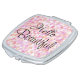 This product is beautiful and just as described. It came in a little box inside a padded envelope, and I expected a smashed mirror, but it's perfect! Thank you! The printing is flawless, and the moon and stars image looks great!