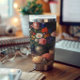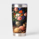 Personalized with elegant initials and a name, this tumbler offers a subtle custom touch while keeping the artwork front and center. The bold contrast between the dark background and colorful florals creates a refined, fine art feel, while the soft textures of the bread and gentle steam from the coffee add warmth and everyday charm.
