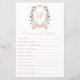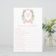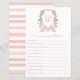 This adorable girl baby shower game sheet that says "Predictions for _____" would be perfect for your baby shower or sprinkle. It has a peachy pink monogrammed watercolor crest surrounded by greenery and white roses, your bundle of joy's first initial and name, and a coordinating peachy pink watercolor striped back. It's unique and precious and a wonderful way to let friends and family share their predictions about your soon-to-be-born baby girl.
