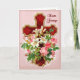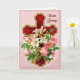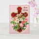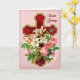 Red and gold vintage cross with a profusion of pretty flowers has been carefully retouched to bring out the wonderful details. There are white Easter Lillies and lush pink Roses. Card Front has rich pink background. A lovely Easter card ready for you to personalize inside.