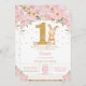 Floral Cute Bunny Rabbit Girl 1st Birthday Party Invitation