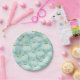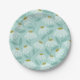 Floral Daisies Pattern Teal Blue & Olive Green Paper Plates