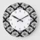 Kitchen wall clocks design in an elegant floral damask pattern in black and white and fancy numbers on the clock face with for any home decor. A beautiful household design for your kitchen, family room, or any room in your house you want to add some character and style.