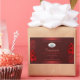 Make a lasting impression with this elegant and exotic product label design featuring pretty red hawaiian flowers with palm leaves on a dark red background. A cool palm leaf shadow matching to the shimmery border frame.