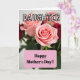 This card shows a close-up bouquet of soft pink roses, with one large central bloom whose petals curl inward like a gentle embrace ❤️. Deeper red roses sit farther back in a slightly blurred background, adding depth that feels like a quiet, affectionate presence behind the main flowers. Green leaves and stems frame the blooms from below, giving the arrangement a grounded, garden-fresh setting. The lighting is soft and diffused, highlighting velvety textures and giving the petals a calm glow that suggests closeness and care. Near the top, the word “DAUGHTER” appears in uppercase outlined letters, spaced clearly against the lighter floral area. Lower down, a rounded pastel pink banner stretches across the design and holds the message “Happy Mother’s Day!!” in darker, thicker lettering that stands out. A small 🌼 detail can be seen tucked among the greenery, echoing the gentle color palette. The main rose sits centered, with spiraling petals in pale blush tones and a few darker blooms fading into the background.